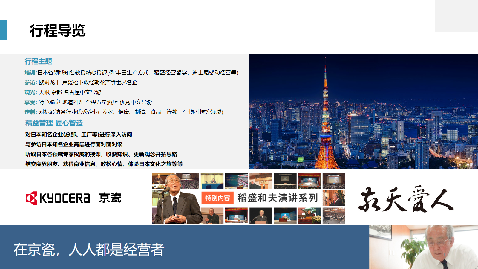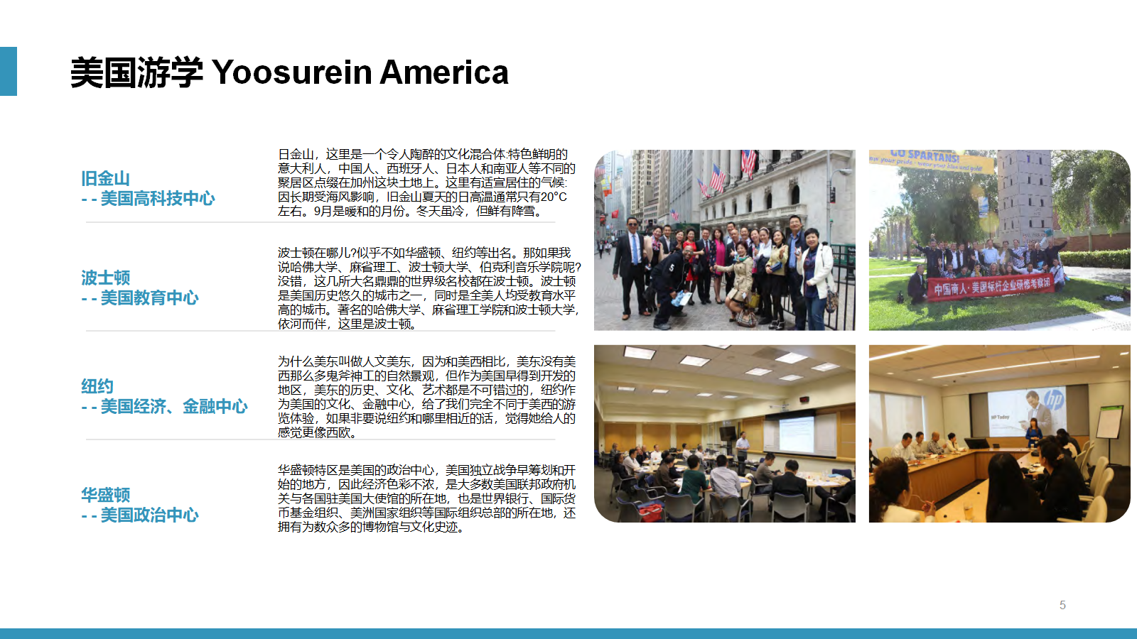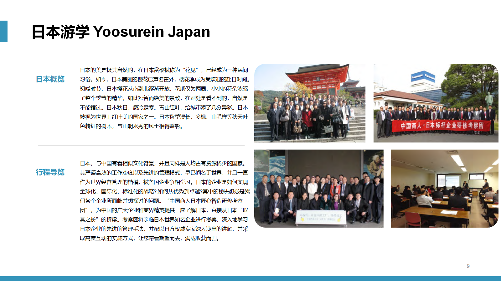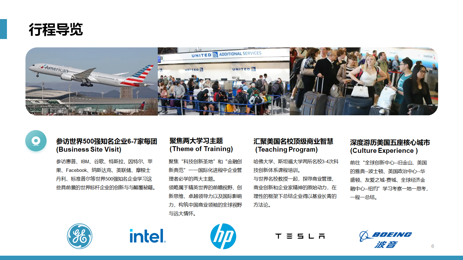 服务宗旨:“学习世界级经营智慧、推动中国企业快速发展!”,自2008年举办以来,分别前往美国日本、德国、英国、西欧、北欧、以色列、演新、南美、印度、新加坡、韩国、台湾等发达国家和地区,成功出团上百个团组,获得了客户的一致好评。